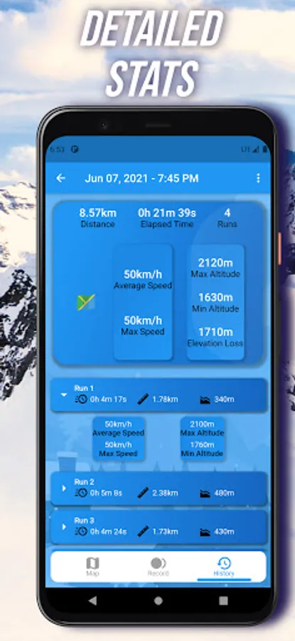 Ski Trackr is ski and snowboard tracker. It uses the GPS on your phone to map out your runs and record statistics.