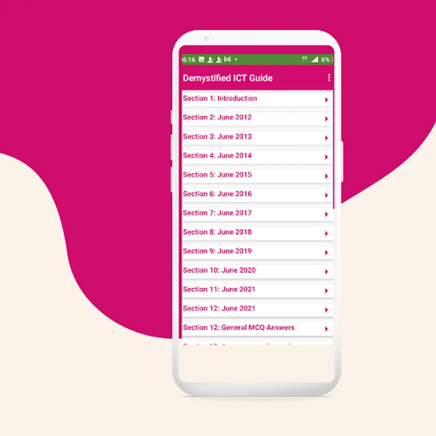 The app was built on the bases of a book entitled "Demystified ICT questions and answers guide" written by the same group of developers to ease students studying and who will be sitting in for Advanced level ICT and ordinary levels CSC.