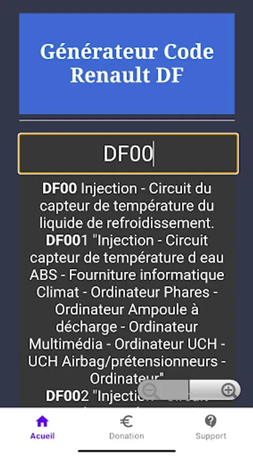 Data DTC Code DFxxx is a simplified interface with a database that includes all known DF codes.