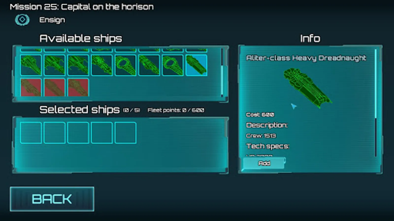 • 36 ships from smallest Scout to tremendous Command Dreadnought;