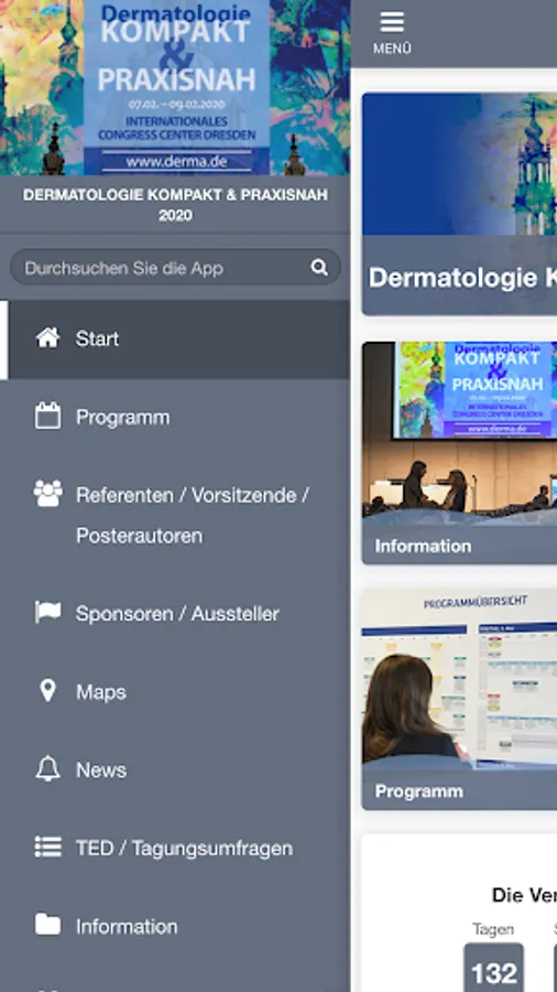 KOMPAKT 2020 is the official app for the conference "Dermatology COMPACT & PRACTICE" of the German Dermatological Society e. V., DDG, and the professional association Deutscher Dermatolgen e. V., BVDD, in Dresden from 7 to 9 February 2020. The "Dermatology COMPACT & PRACTICE" serves the time-saving and compact knowledge transfer and treats all disciplines of dermatology in workshops, lunch seminars and plenary sessions.