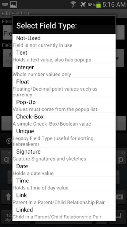 With your data stored locally, HanDBase lets you design the databases to meet your specifications. When designing your database, choose from field types including: