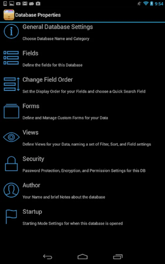 * Check out HanDBase's manual at http://www.ddhsoftware.com/docs/HanDBaseforAndroidUserGuide.pdf