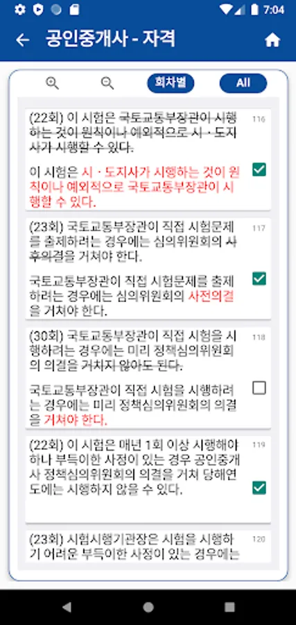 You can only check if you really memorized it correctly or if it feels like you memorized it only by solving the problem. The correct text is written as it is in the original text, and the wrong text is marked with an indication of where and how it was wrong, so it is important to understand and memorize the concept, where to focus on studying, and what pitfalls the examiner should place when preparing questions. You can see at a glance whether you are selling. You can also check the score status by topic, so you can check how much you have memorized, and you can check the passages you have memorized less and the passages you need to focus on, and there is a function to collect and solve only the checked questions. Learn iteratively until
