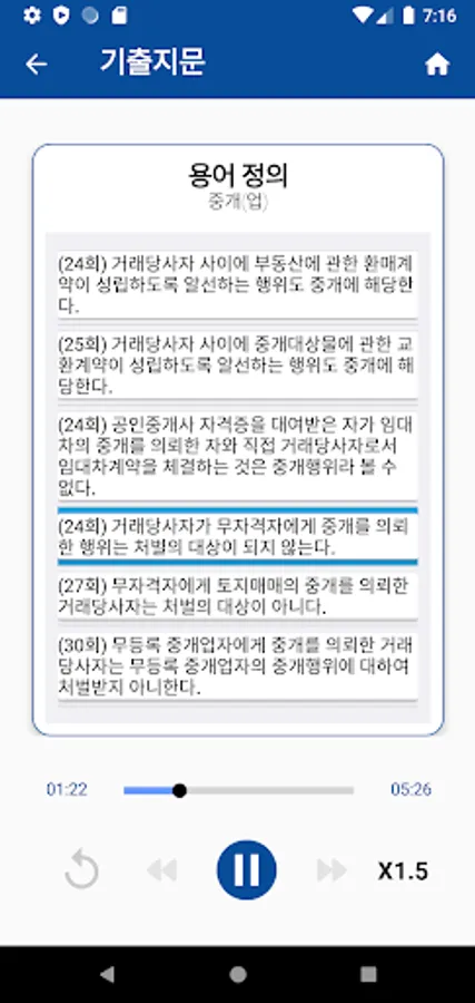 This app is equipped with an audio function that reads the previous papers, enabling three-dimensional learning through visual and auditory collaboration, reading the previous papers with the eyes and listening to the old papers with the ears. By using this function, it is as if you are listening to the radio, while commuting, in the bus or subway, driving, doing household chores such as washing dishes or cleaning, etc., taking advantage of the spare time when it is difficult to concentrate on studying. If you do it, it will be of great help in making the previous fingerprints familiar as a brain engraving effect and further memorizing them.