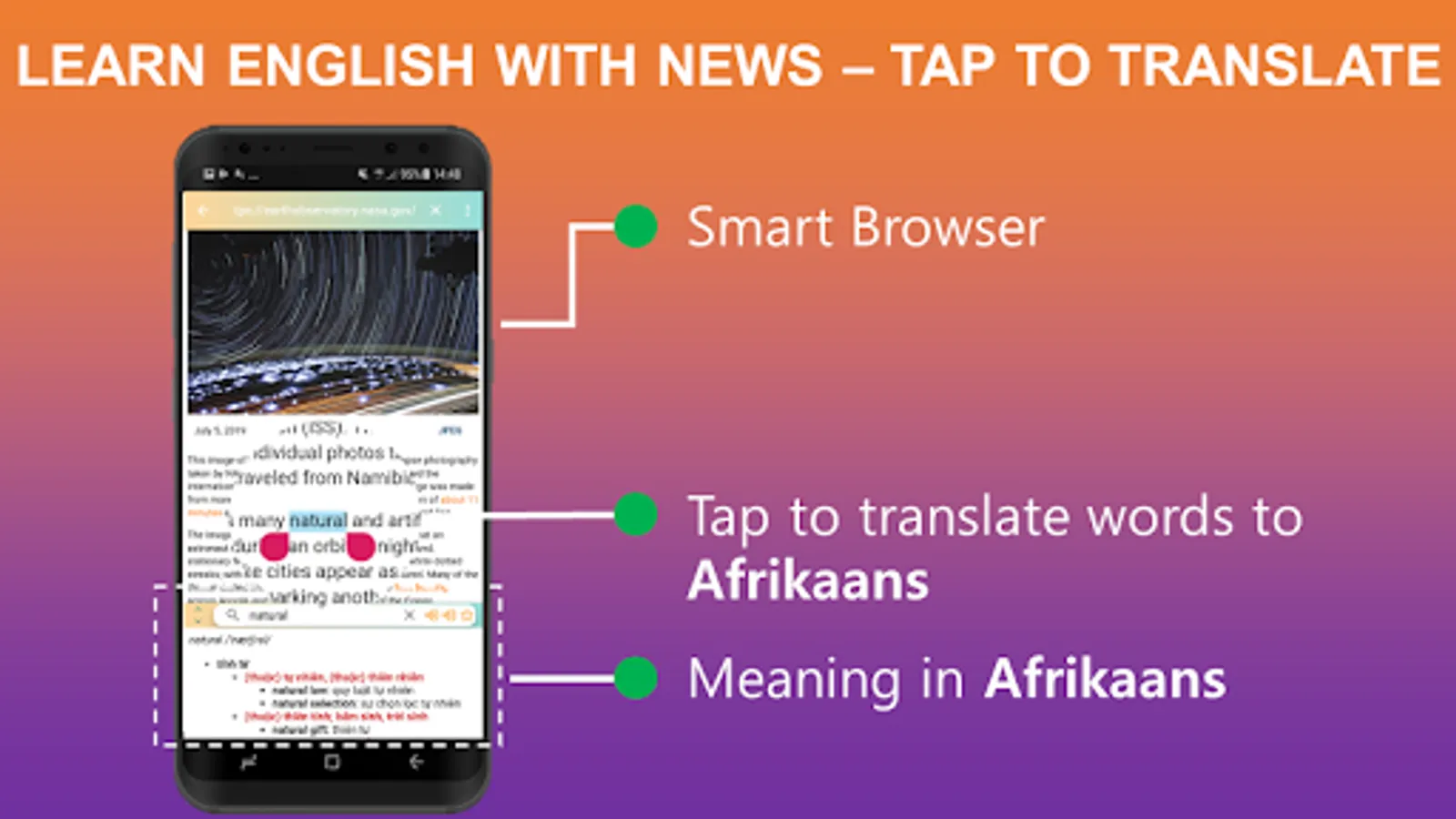 Easily learn English language with English Afrikaans Dictionary & Translator.