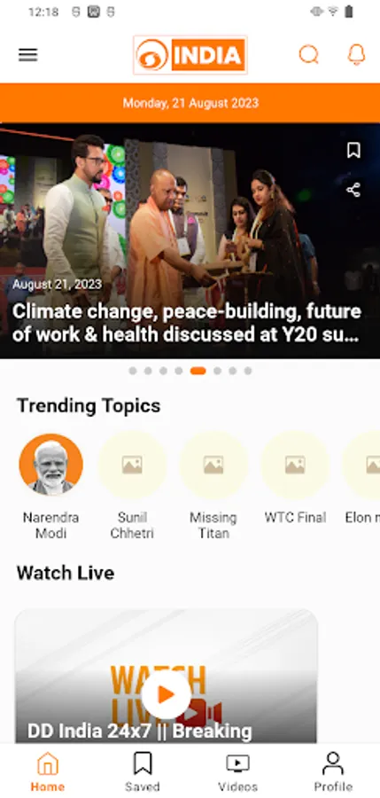 Dive into breaking stories, thought-provoking opinions, and captivating podcasts – all with the new DD India App. Access authentic updates from India's renowned International TV News Channel, now available in form of app. We're more than news – we're your guide to understanding the world. No more searching for the reliable content as it's right here, genuine and updated. Download now to explore the trusted source of news conveniently through a tap!