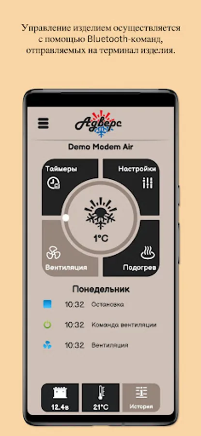 The application is intended for remote control of liquid preheaters BINAR-5S, BINAR-5-Compact, 14TC, air heater PLANAR and their modifications.