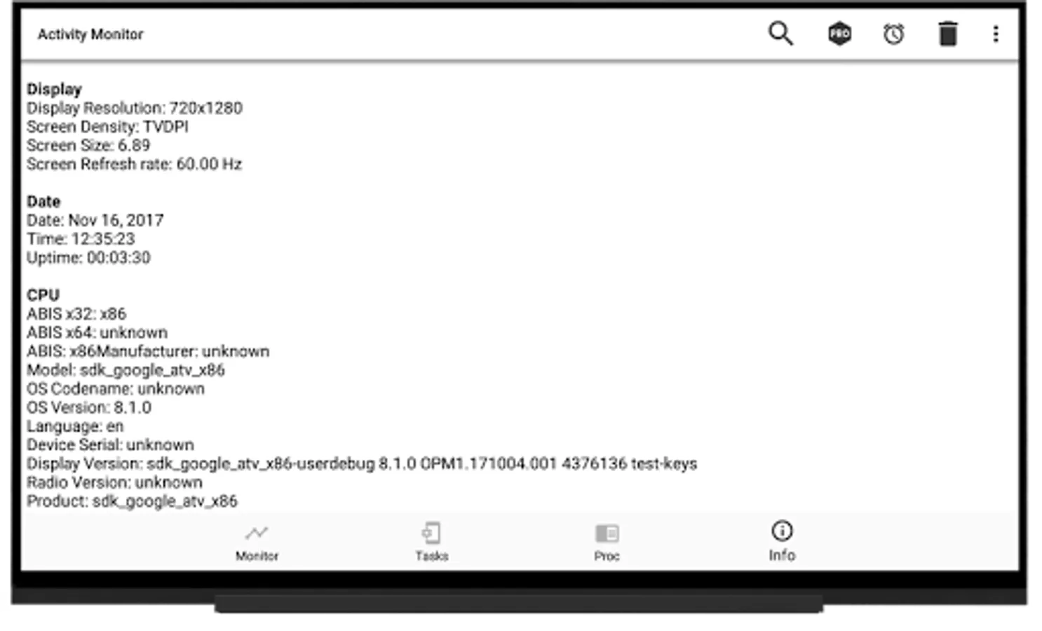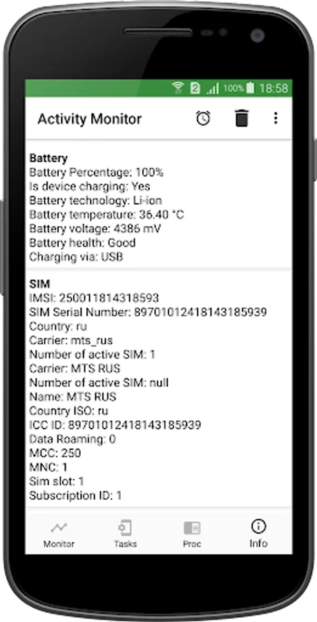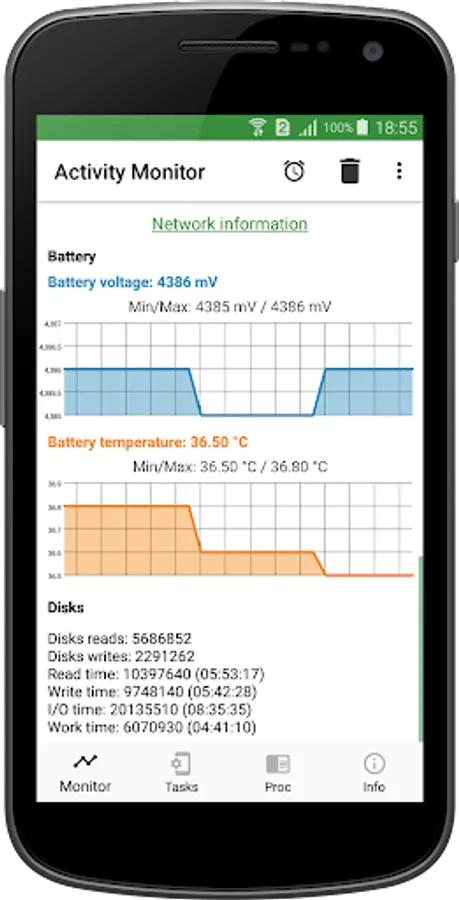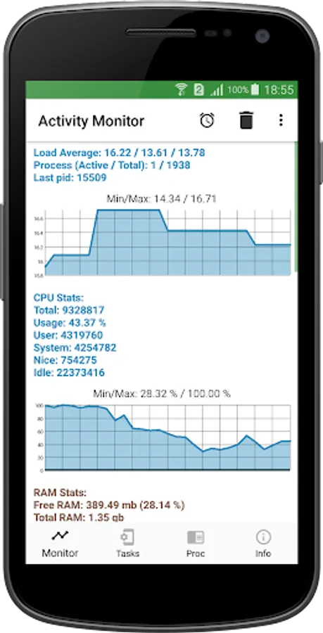 Activity Monitor is a simple and functional app that allows you to effectively watch the most important processes that take place on your smartphone. Evaluate the statistics of CPU and RAM usage, analyze the load on the battery and processor. The utility work with most mobile devices based on Android.