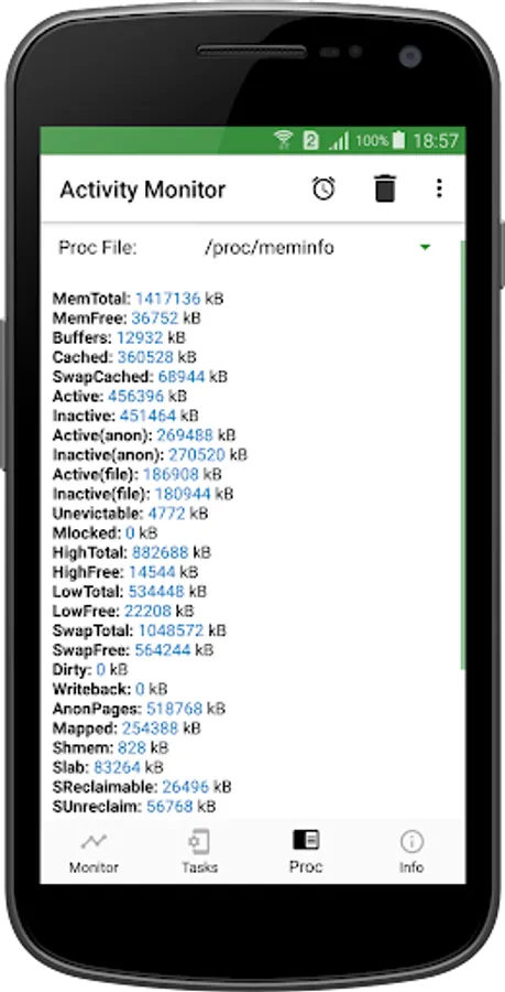 Detailed information about the contents of the Proc folder allows you to evaluate the state of the virtual file system of your Android device. Access all key file system options in one tab.