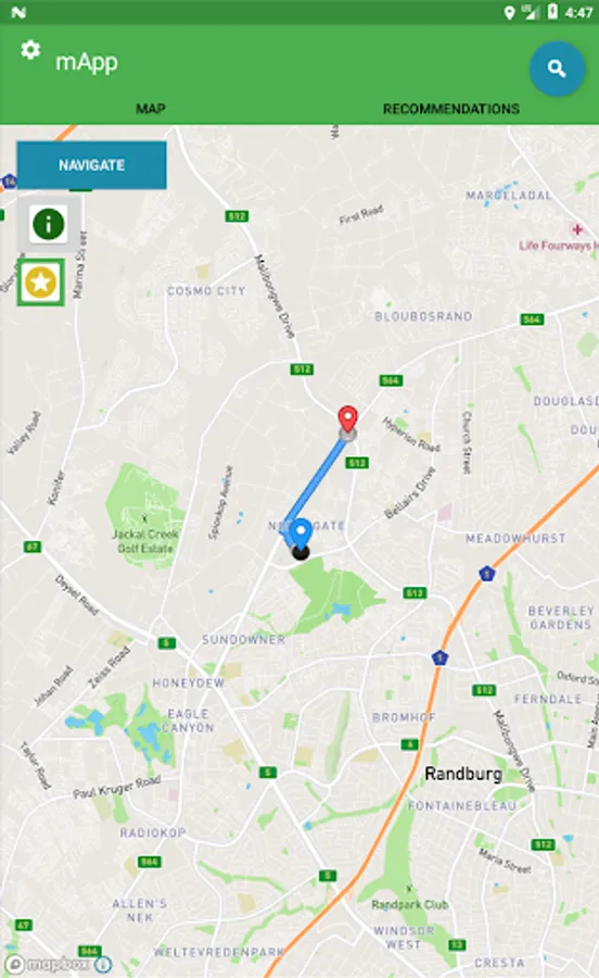 • Get directions to selected landmark