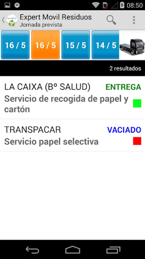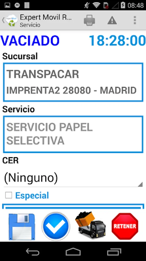 It also allows recording the reason and duration of possible technical stops, control of services performed, discharges, landfills and plants, or possible incidents that occurred during the course of a service, such as a vehicle breakdown.