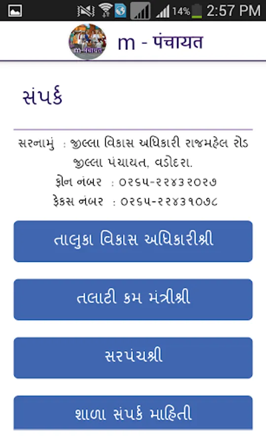 “m-Panchayat” is mobile application of District Panchayat Vadodara, Gujarat, India. This application have following features.