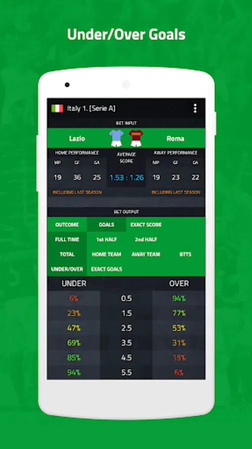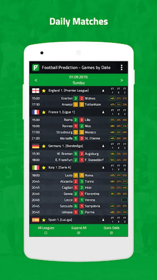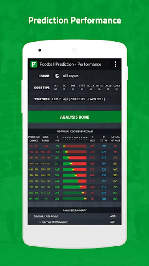 We don't need to give you false promises about how good is app, at any time you can check all previous predictions and their efficiency in reviews organized by leagues, odds type and time period.