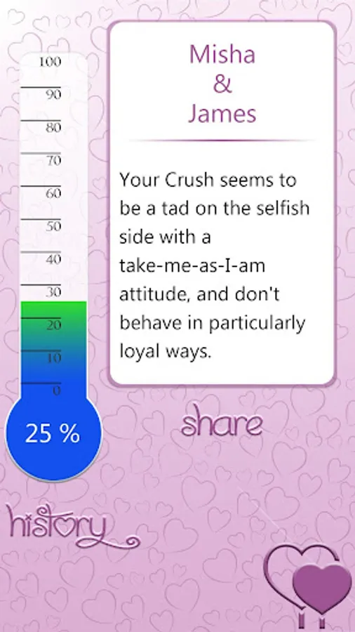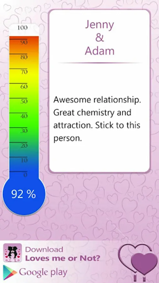 You play “Loves me or Not?” game, the most beautiful love calculator on Google play. And it’s scientifically proven method of calculating love. True story. :)