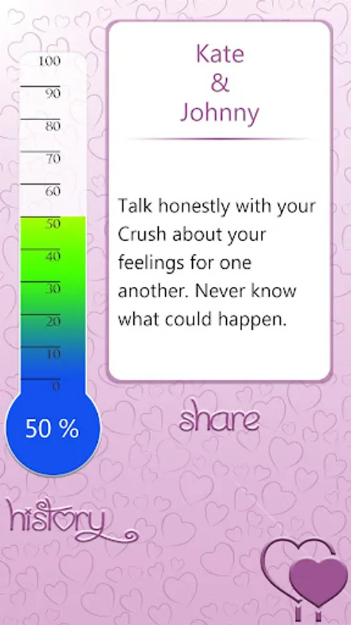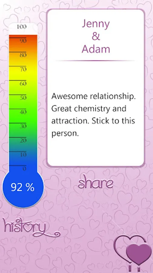Tips: Hard to believe, but our love calculator sometimes isn't 100% accurate - Shocking, we know! :) Don't worry, you can beat the odds and defy all the predictions. Maybe you are not meant to be together for today, but you are in the future. In words of some unknown author - "We were never meant to be baby, we just happened."