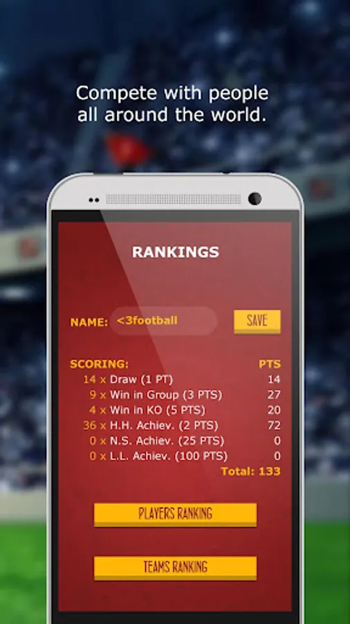 The aim is to score maximum number of goals and accumulate points. You can earn extra achievement points (Hometown Hero achievement, National Star achievement or Living Legend achievement) from completing some of the given tasks. Compete with people all around the world and compare your results on the global ranking list.