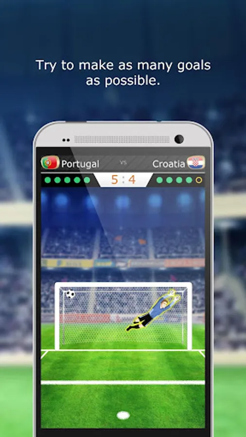Tap the screen to score a goal (6 options). The ball will glow yellow when it is your turn to shoot.