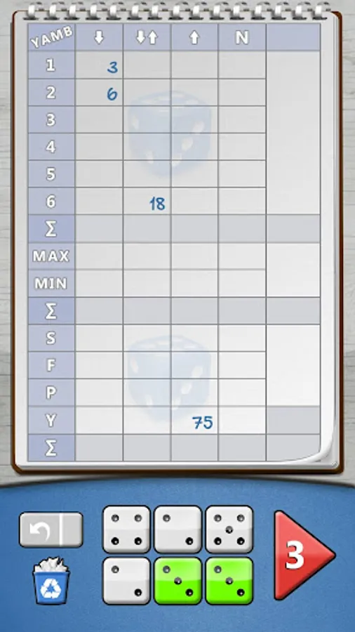 • Remember: Yamb isn’t all about luck; you should also have tactics and a good strategy to win.