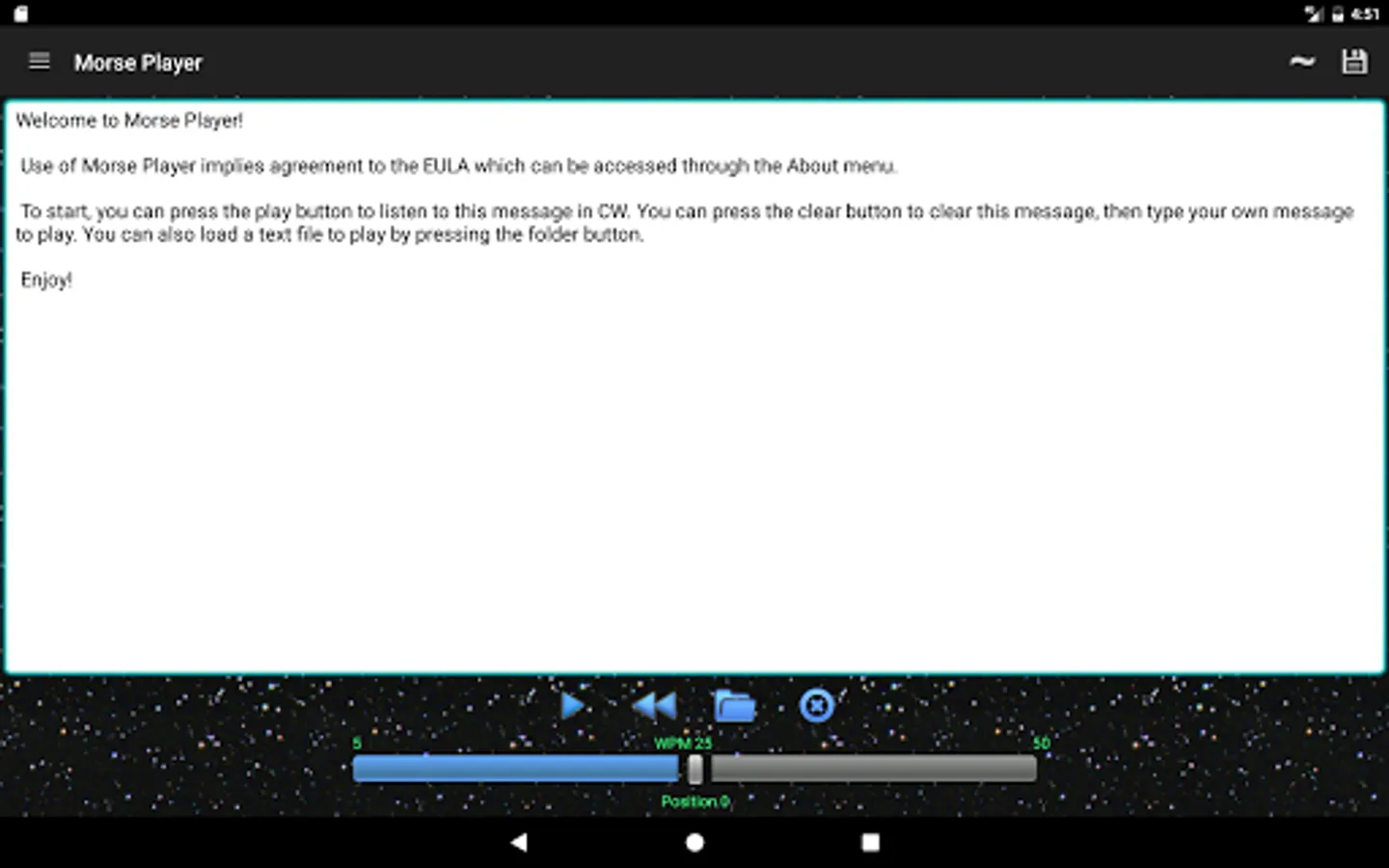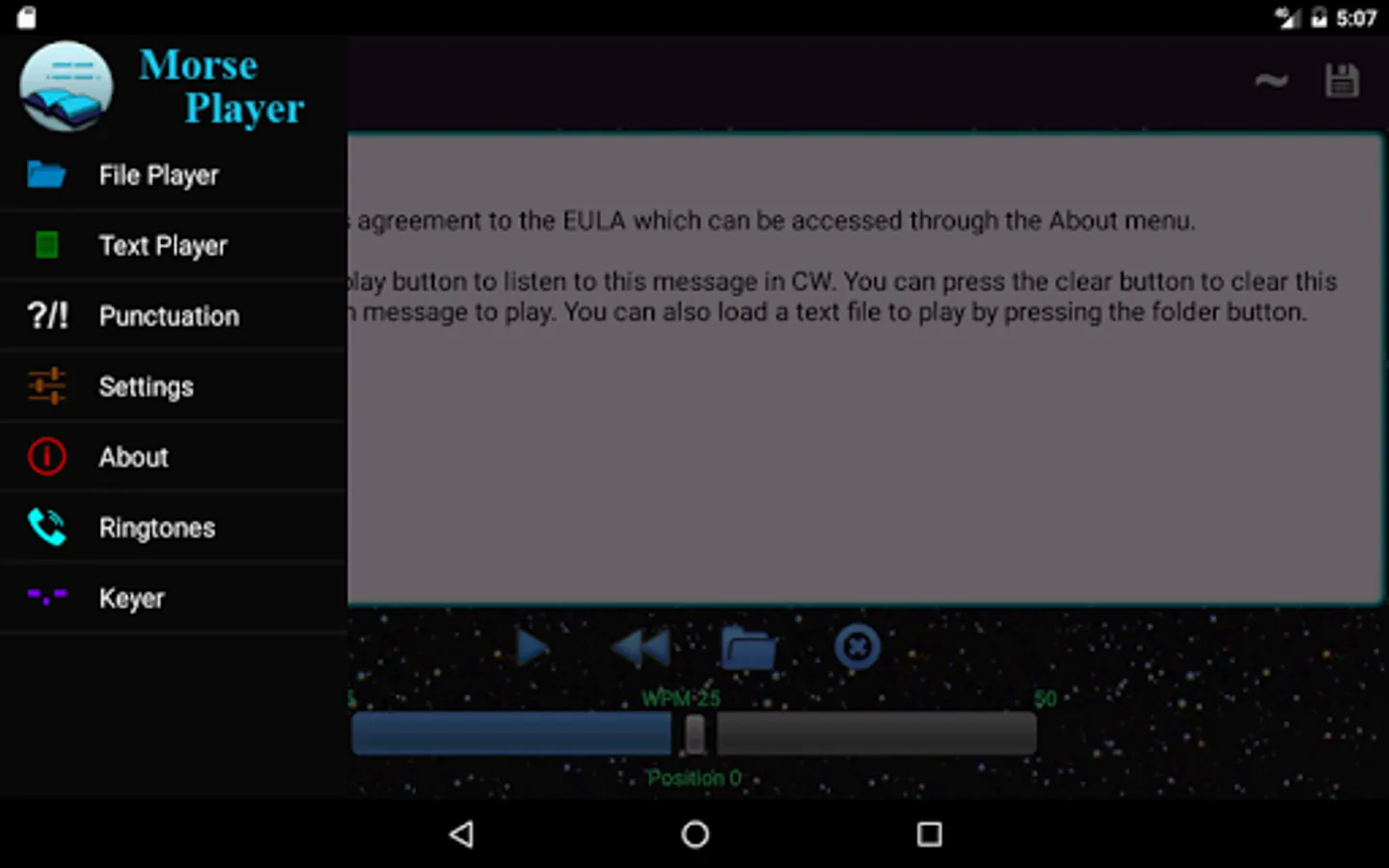 This is the free version and using it is a good way to evaluate if Morse Player works on your device. Its fully functional and contains ads. The paid version has the ads removed.