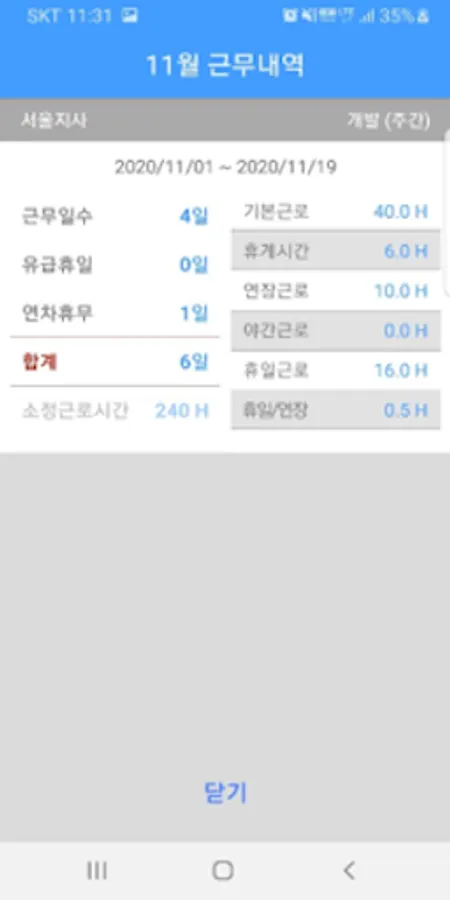You can check the number of monthly working days (work days/paid holidays/annual holidays), monthly working hours, and monthly working hours (basic work/extended work/night work/holiday work) in real time.