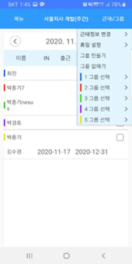 Through the worker group setting function for each team, workers by shift and by task can be sorted and checked through vertical bars by groups with different colors.