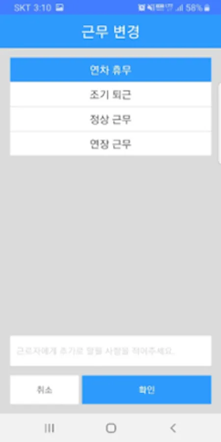 Employees' time and attendance information can be changed by granting annual work/early work/overtime work.
