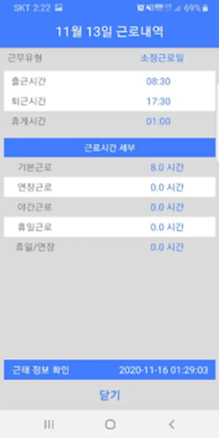 You can check the number of monthly working days (work days/paid holidays/annual holidays), monthly working hours, and monthly working hours (basic work/extended work/night work/holiday work) in real time.