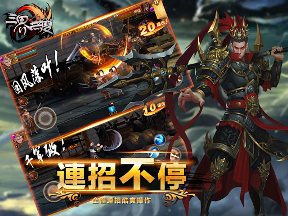 "Three Realms Warriors" is the first part of the trilogy of Man, Demon and God-Human World. The timeline is set as the horizontal version of the fighting RPG action combat mobile game of the Three Kingdoms era. The game inherits a large number of home machines and arcade 2d fighting games. The features of the game are centered on the task-guided character growth, supplemented by copy and pvp. Gorgeous special effects, demonized historical figures of the Three Kingdoms, and cool equipment growth system, the strongest will be matched with the battle, the war background world under the background of the Three Kingdoms, the heroes of the country, the heroes of the past, the eternal characters, still look at the present!