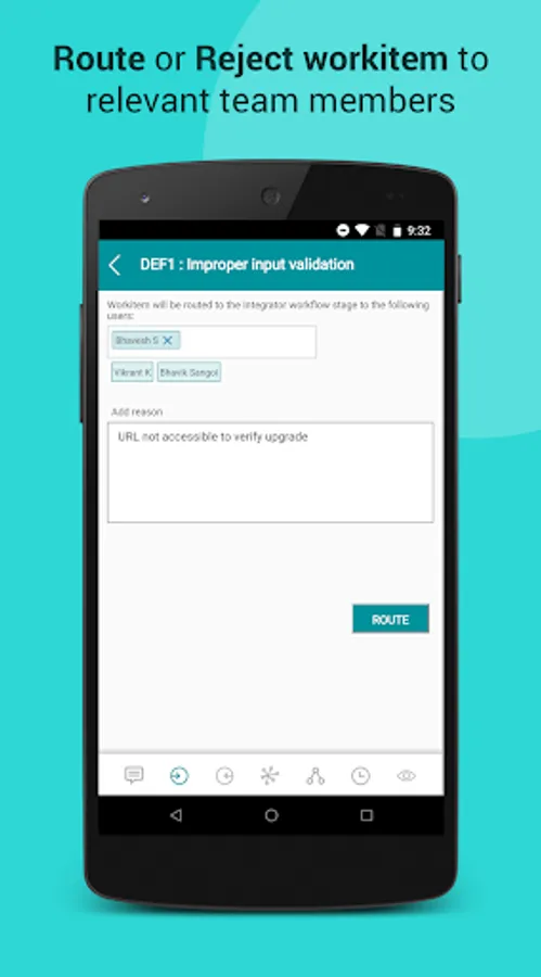 5. Route or Reject workitem to relevant team members.