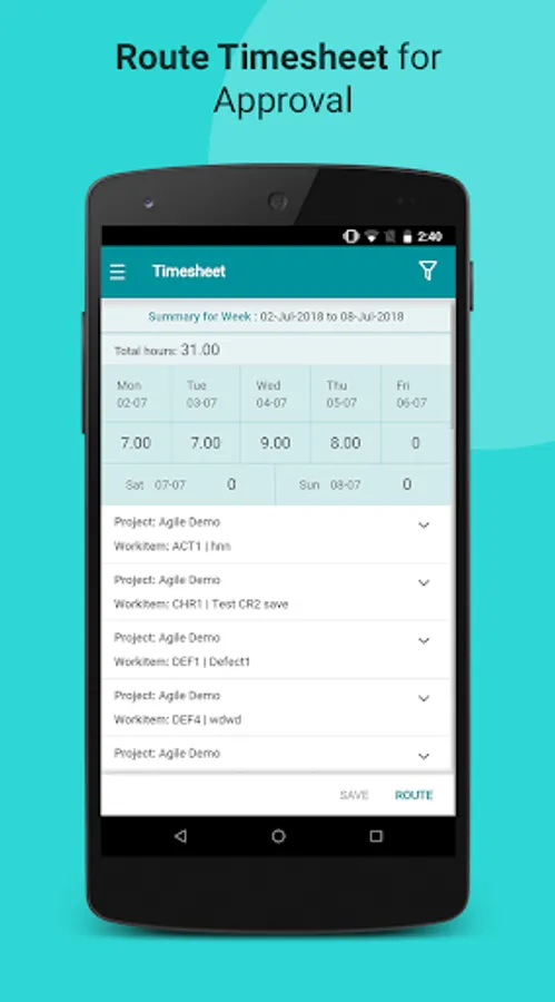 4. Log the time spent on a workitem in the current week.