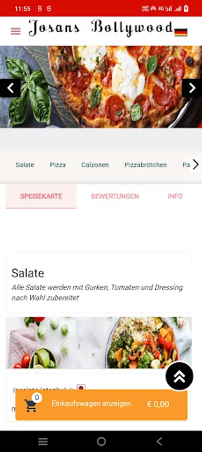 We are pleased to welcome you on our site. Our many years of experience have made us perfectionists and our quality awareness obliges us to use the best and highest quality ingredients. There is guaranteed to be something for every taste on our menu; we not only have Italian dishes, but also a large selection of other international specialties, such as Mexican, American and German. With us, the boss still cooks himself, himself an Indian, so special attention is paid to the Indian dishes, which are prepared with spices originally imported from India and personally selected by him. Come by yourself and let us convince you. An optimized baking process ensures short waiting times for collection. You are also welcome to have your food delivered to your home by one of our speedy drivers. Or order here or in our app, available in the App Store and Play Store. We look forward to seeing you soon.