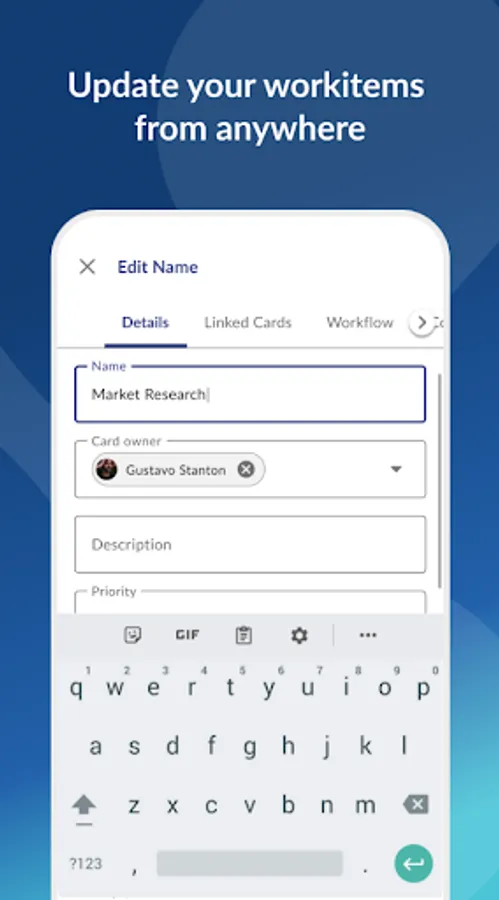 Update details such as the priority, card owner, start date, end date, due date, etc. for the workitems