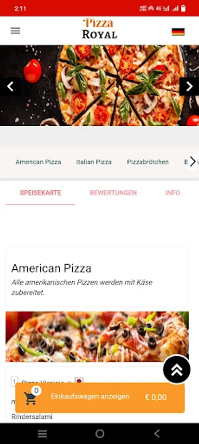 Pizza Royal Kempten, the ultimate fusion of Italian and Indian flavors in Rodewisch! Embark on a culinary journey that combines the best of both worlds. Indulge in our delicious pizzas, pastas and flavorful Indian dishes, expertly prepared using the finest ingredients and authentic spices. We take great pride in providing you with exceptional taste and service to ensure your dining experience is nothing short of extraordinary. Thank you for choosing us as your destination for a delicious gastronomic adventure. Enjoy your meal and savor the delicious blend of Italian and Indian cuisine!