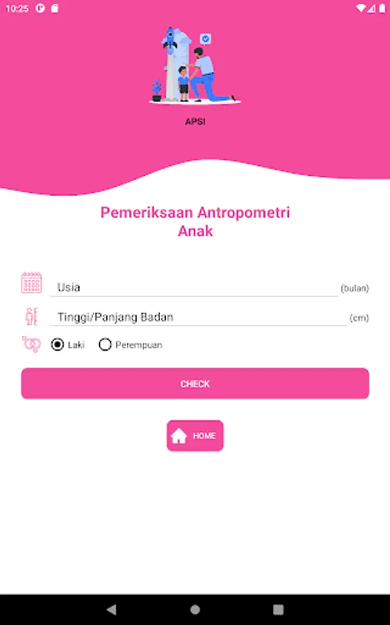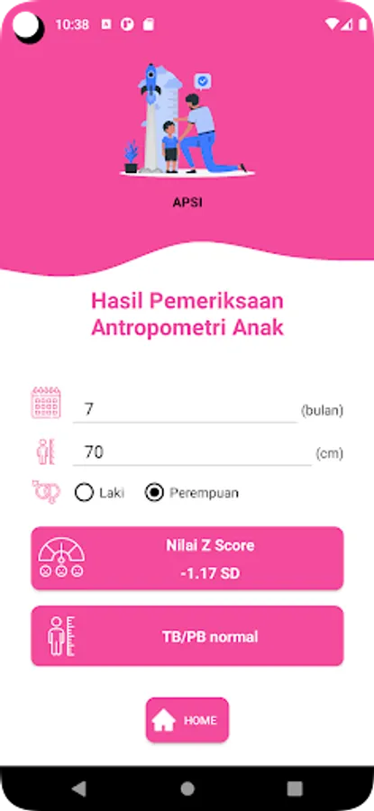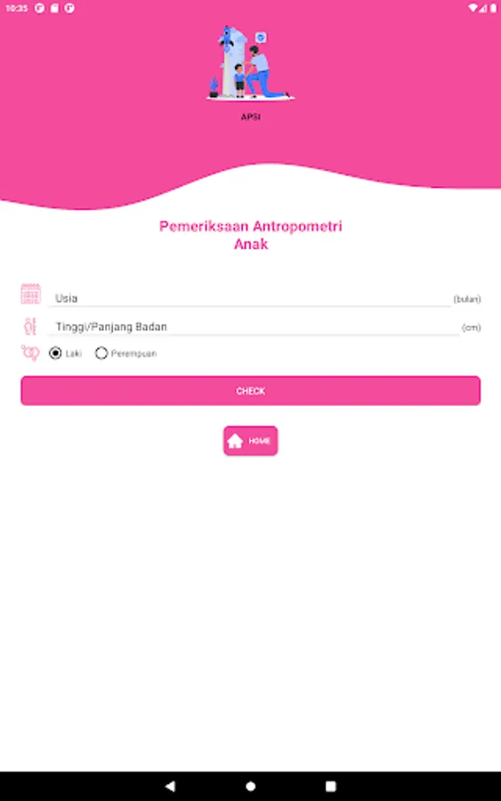 APSI is a simple assessment tool in the form of an application by entering data on height/length and age of infants/toddlers for early detection of stunting based on Z-Score calculations. In addition, APSI is also equipped with monitoring the nutritional status of the mother by entering data on the size of the Upper Arm Circumference (LILA) and hemoglobin levels in the blood. The LILA measurement is for early detection of Chronic Energy Deficiency (KEK), while the measurement of hemoglobin levels in the blood is for early detection of anemia.