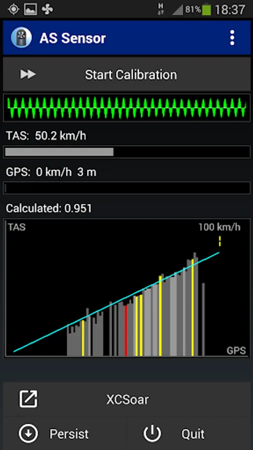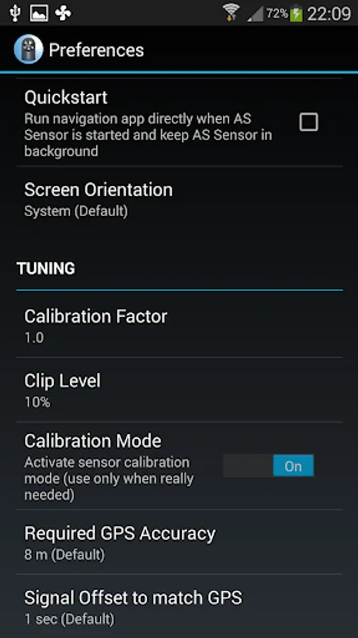 The navigation app can be started by AS Sensor automatically or manually. Afterwards AS Sensor runs in background and sends one speed sample per second.