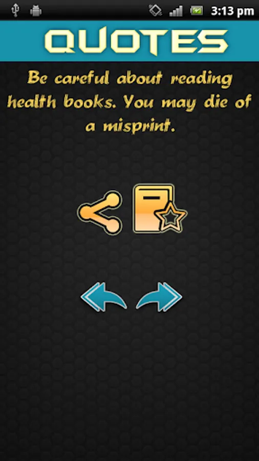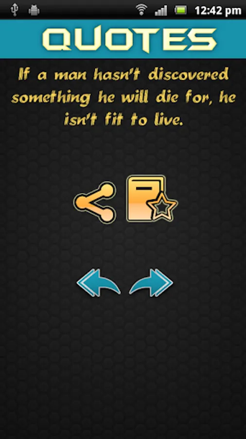 Quotes Book is a collection of quotes that belongs to various familiar personalities. All that you need to express or send that you feel about the quotes, you get it here. This application is easy to handle and a quickie too. You just select the category then a list of quotes falls on your phone screen select your quote, tap on it and you will get the options to send it. Select that you want and here you go.