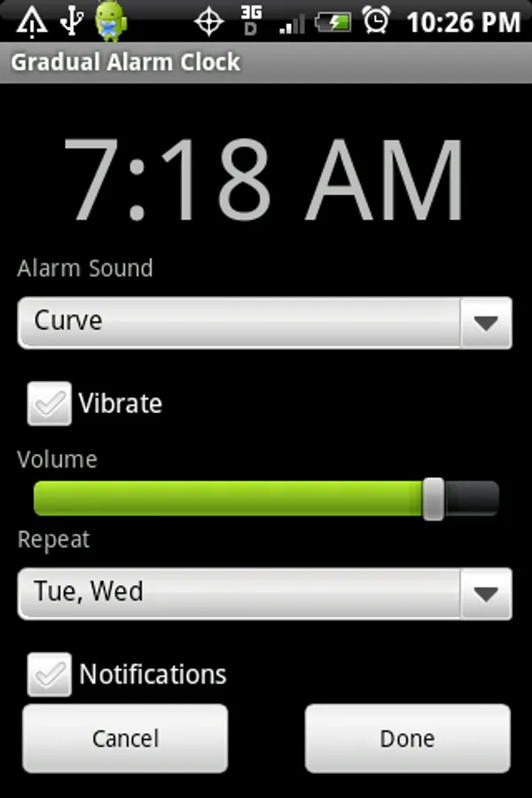 The most gentle way to wake to an alarm! GAC will sound once at 30 minutes before your alarm, twice at 15 minutes, and three times at 5 minutes. At the alarm’s set time, GAC will sound and repeat until dismissed. Waking gradually ensures that you're really ready to get up by the time your alarm goes off. No more snoozing!