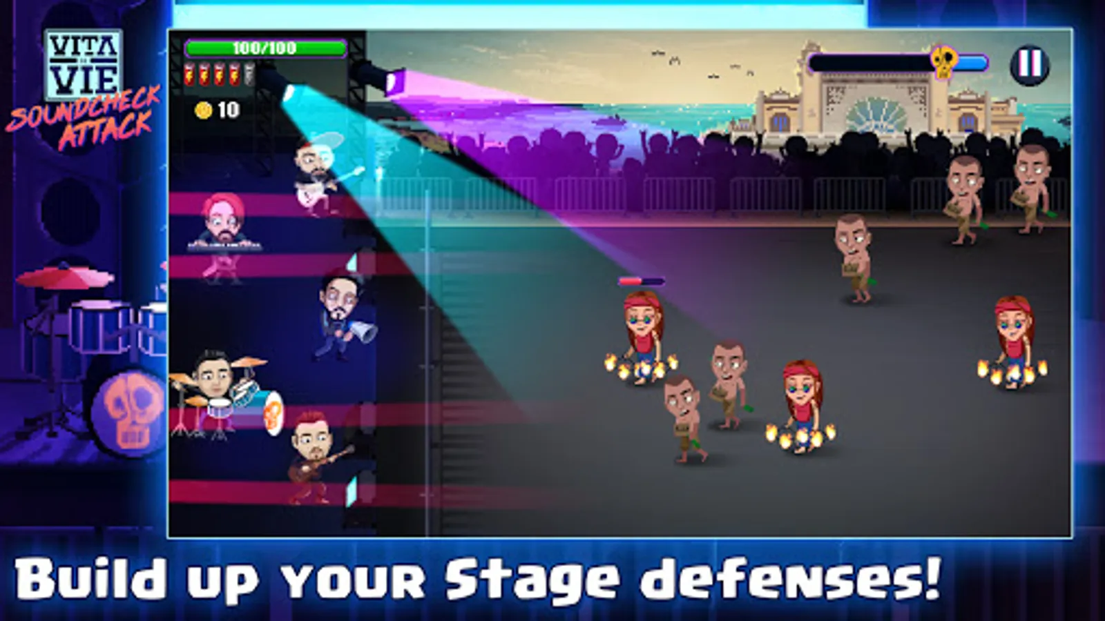 Upgrade your stage, fix the lights, and play some music for your fans. Survive the waves and ensure you are able to finish the soundcheck before being overwhelmed!