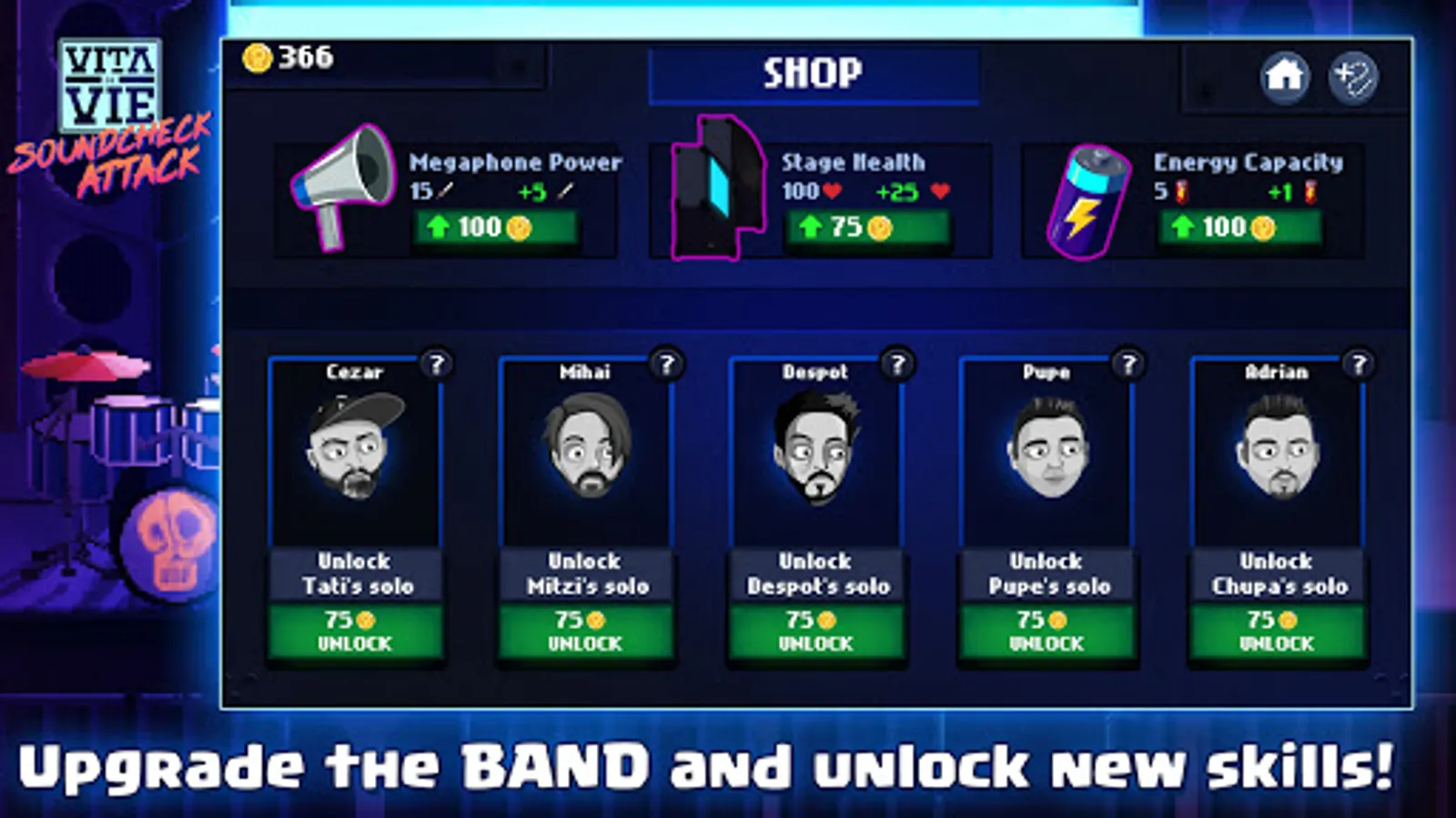 Each band member has unique abilities and a unique connection to the audience. Use them to rock your fans off their feet and get even your harshest critics on your side, making each and every concert memorable!