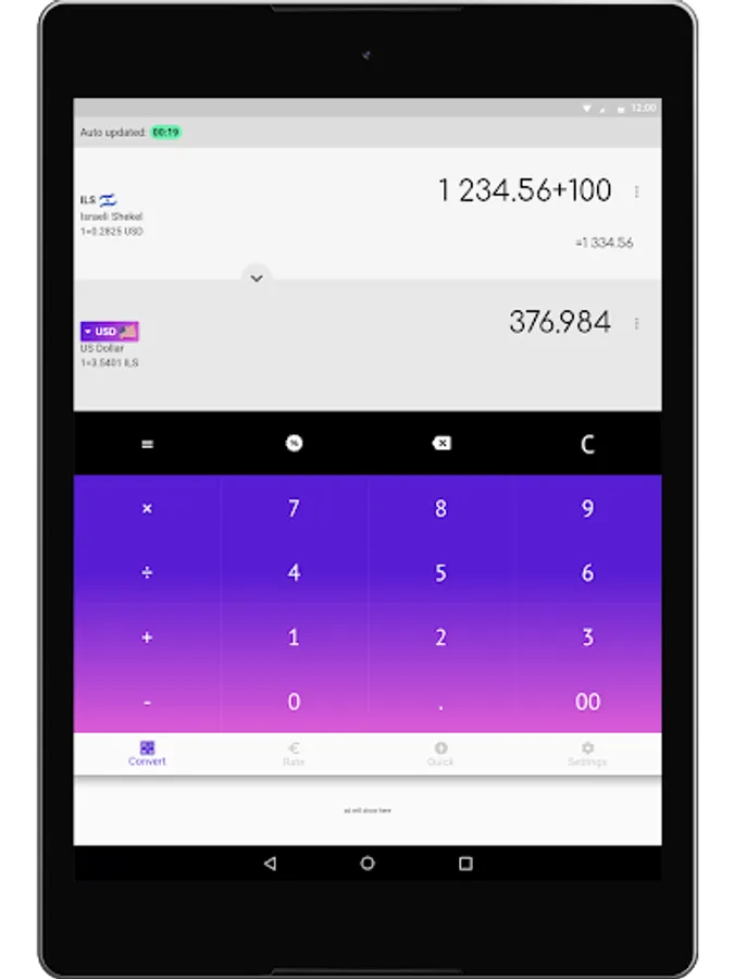 Automatic rate update Israeli Shekel ILS to all currency, saves rates for later offline usage!