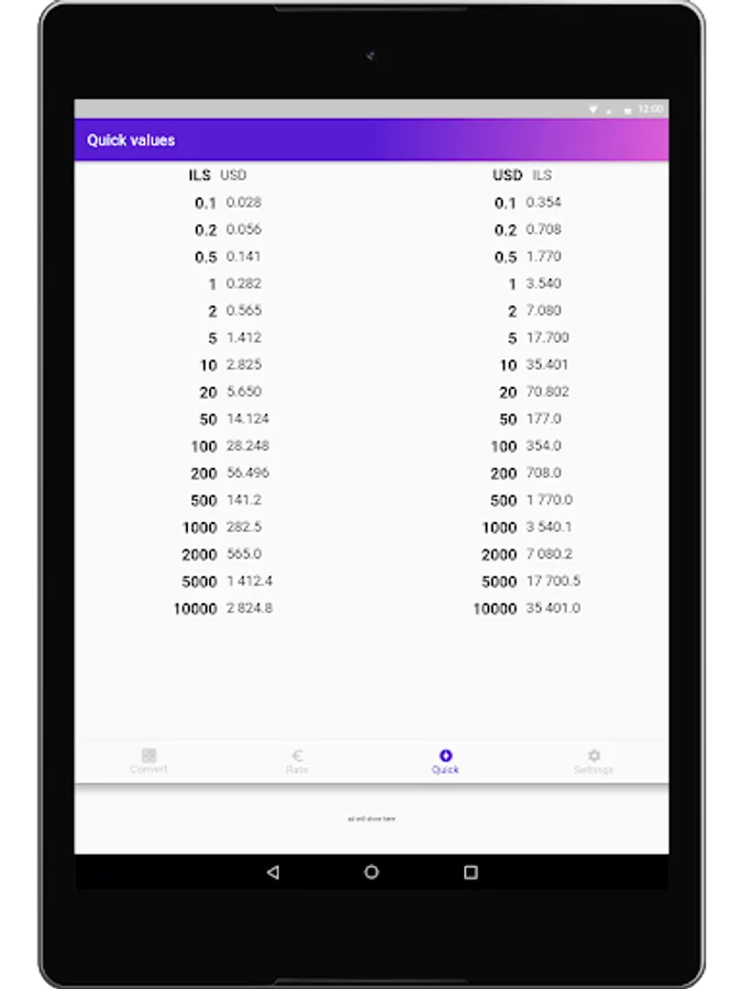 ‣ quick conversion table - for quick reference currency conversions Israeli Shekel (ILS) rates, or add your own (NEW)
