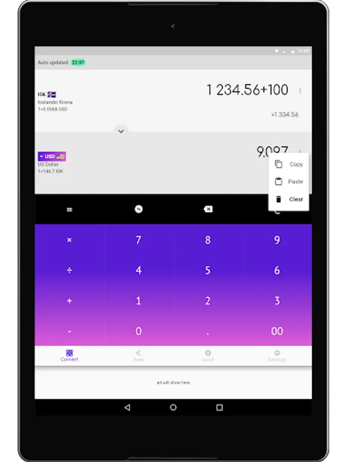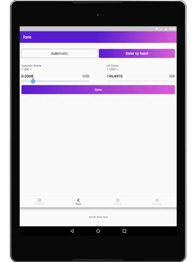 Automatic rate update Icelandic Krona ISK to all currency, saves rates for later offline usage!