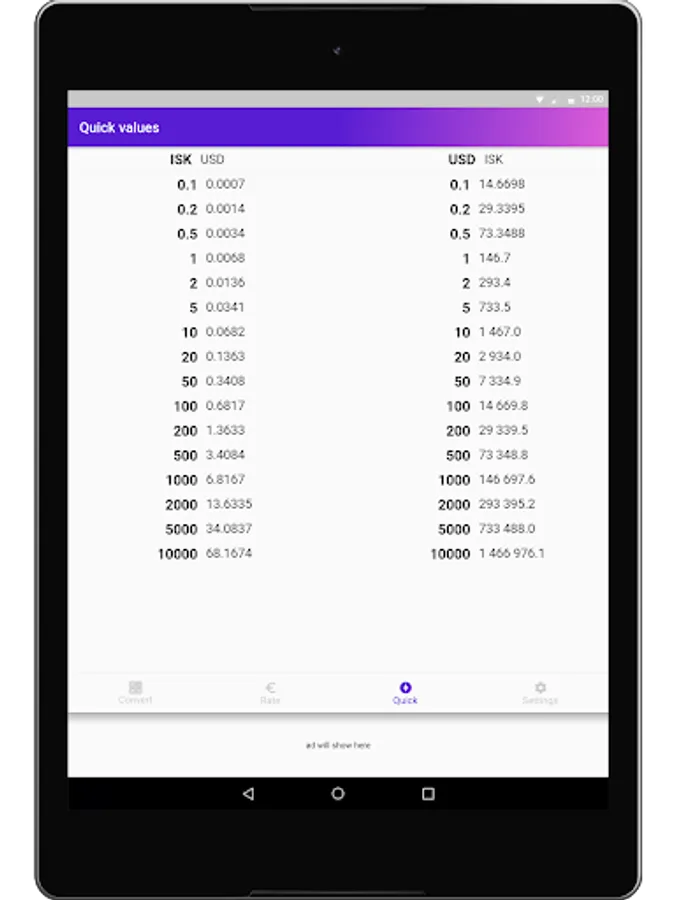 ‣ quick conversion table - for quick reference currency conversions Icelandic Krona (ISK) rates, or add your own (NEW)