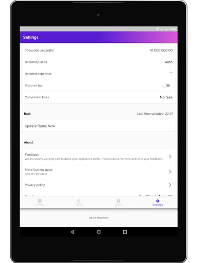‣ custom rate custom currency rate setting - set your own rate for even more precise currency rates