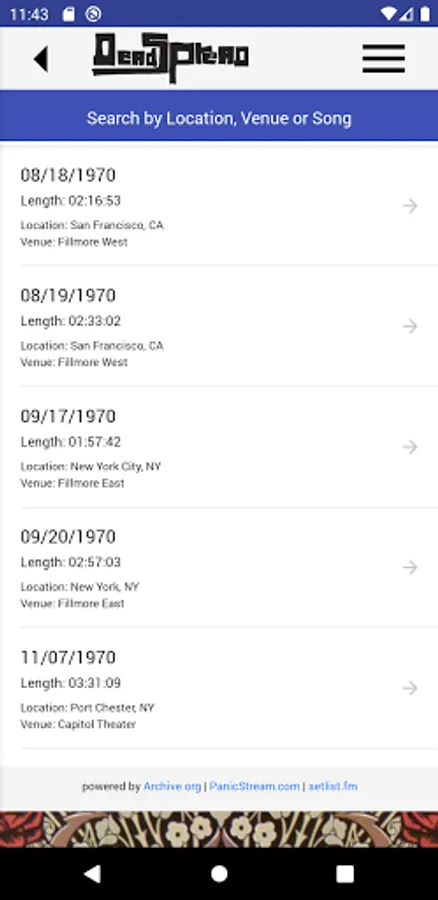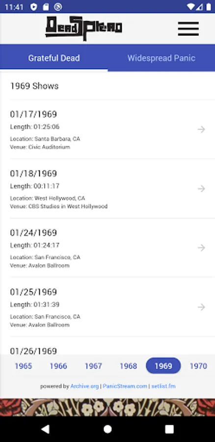 Stream & download Grateful Dead Shows and Widespread Panic shows.