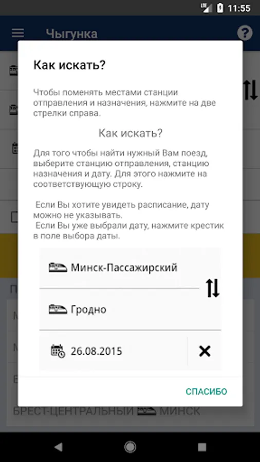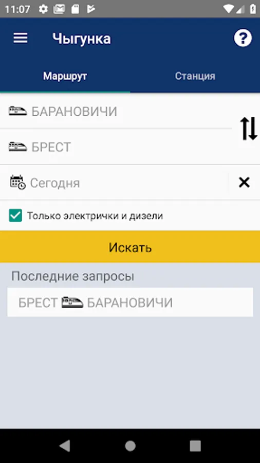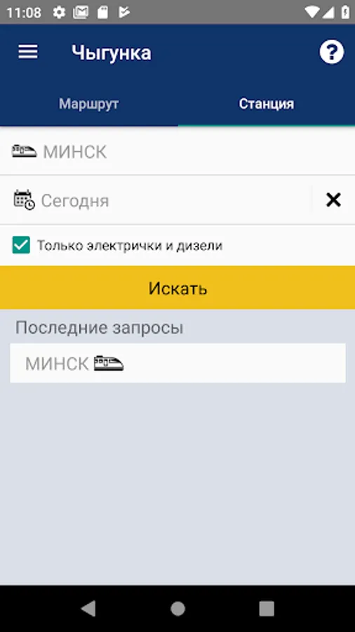 The application works exclusively online - requesting the information from the site of BC (though, once scanned the schedule between the stations stored on the phone and can be accessed in the absence of the internet - so far only for suburban trains).