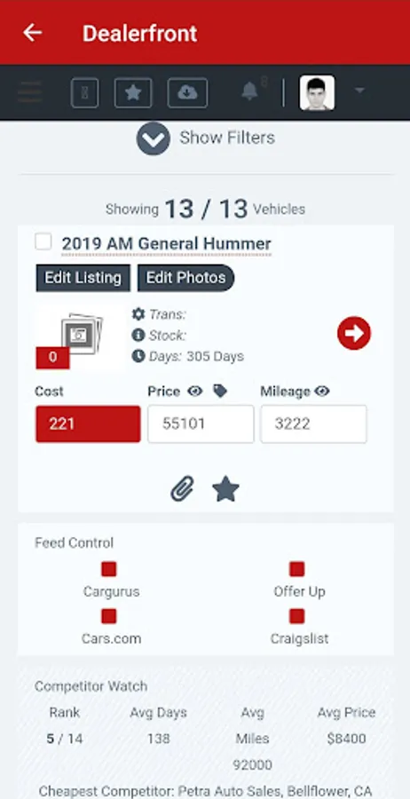 The app will allow customers of dealerfront to access the portal and manage inventory.