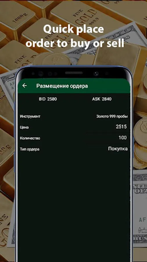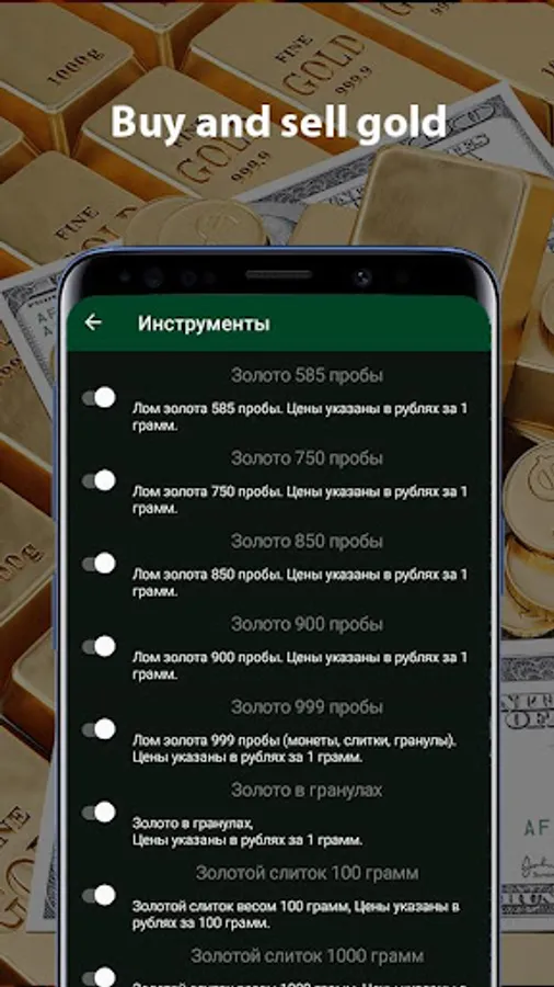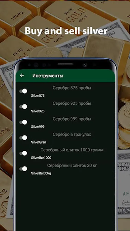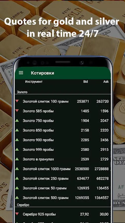 If you want to buy or sell gold/silver bars/granules - no problem! In the iGold, you can place order to buy or sell precious metals bars and granules. You can see on the chart the current quotes of needed metal, place your order or select an offer from the list.
