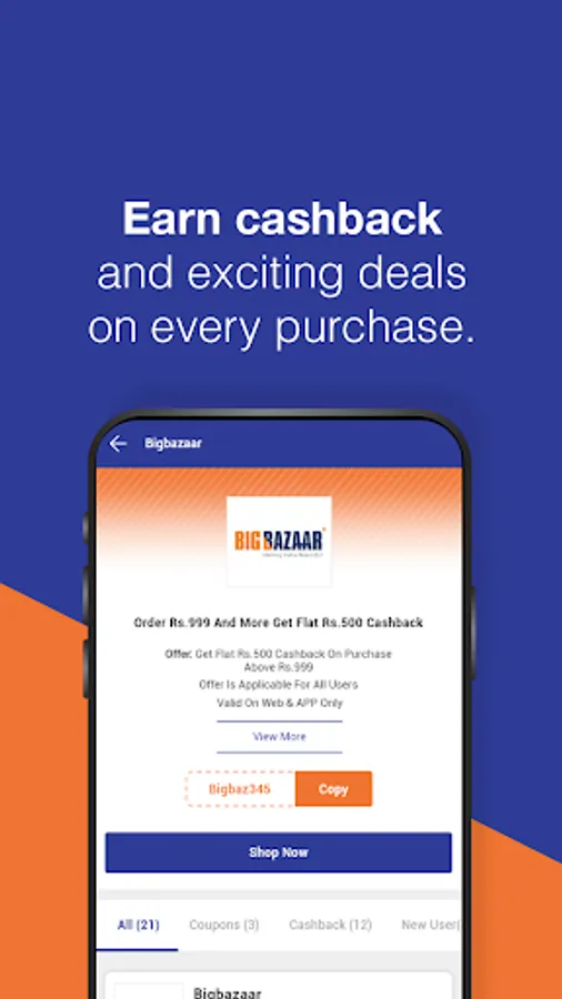 Buy on All Top Online Shopping Sites: Shop and earn cashback from your favorite brands such as Myntra, Medlife, Grofers, Amazon, Ferns N Petals, Netmeds, Ajio, The Moms Co., and whatnot.